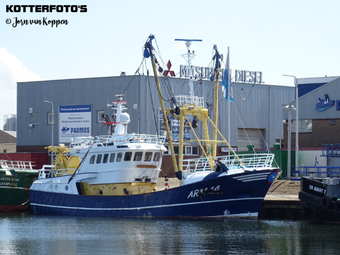 Op de foto ligt de ARM-14 in de binnenhaven van Stellendam. De kleurstelling van de kotter van Koffeman is inmiddels iets gewijzigd. Tegelijkertijd wordt de kotter ontdaan van de pulsliertjes en wordt de nettenrol teruggeplaatst om te kunnen twinriggen. In maart 2020 wordt de kotter eindelijk omgenummerd naar UK-68.