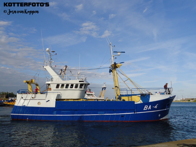 Op de foto ligt de scalloper in de binnenhaven van Stellendam waar het schip zal worden gerenoveerd door Padmos. Het schip krijgt een verfbeurt en de tipping doors zullen worden vernieuwd. Deze tipping doors zijn de stalen kleppen aan weerszijden van het schip waarmee de stalen netjes worden geleegd.
